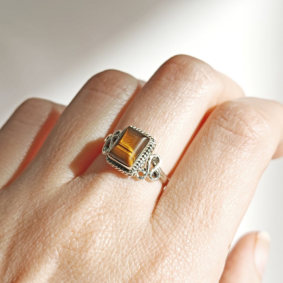 Anillo 'Kusi' de Ojo de Tigre - Plata de Ley