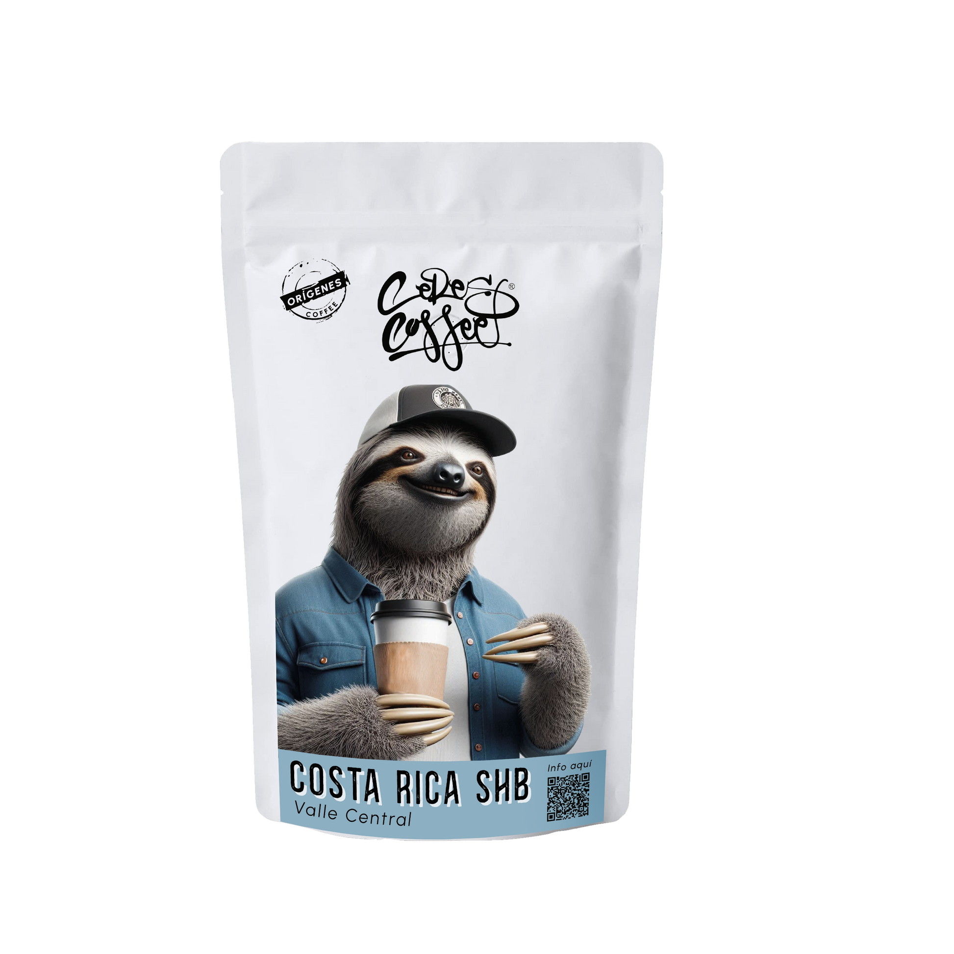 Desde los cafetales de alta montaña del Valle Central, donde los perezosos se toman la vida con calma entre flores de café, llega este arábica 100%, con perfil floral, dulce y equilibrado.