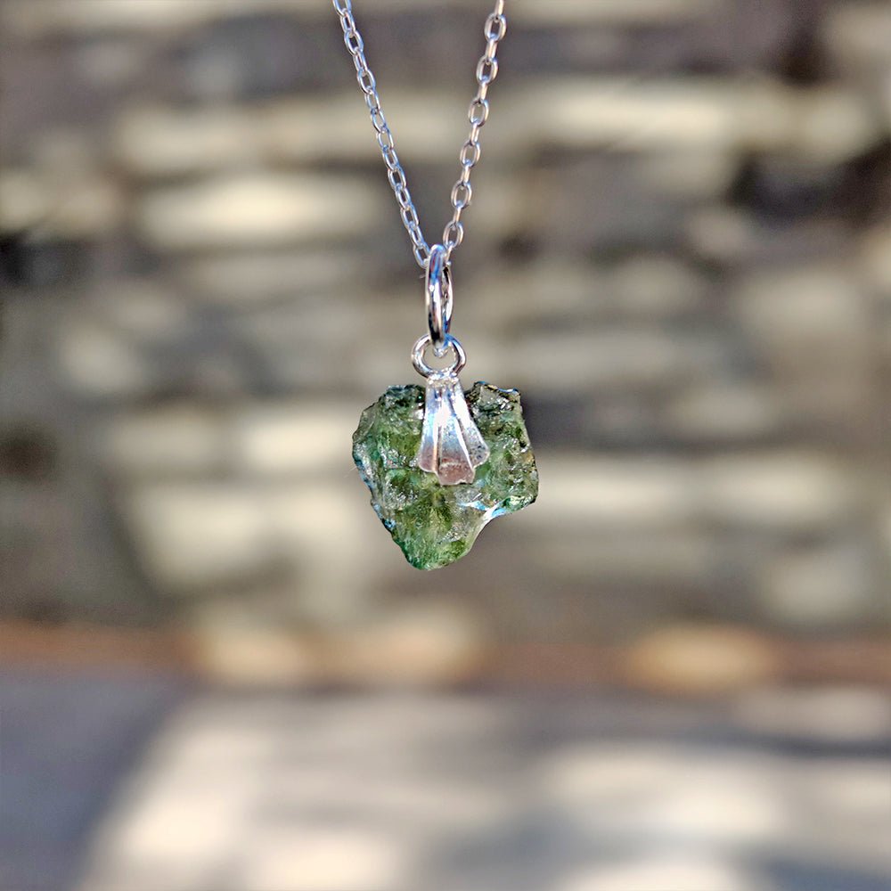 Este colgante ha sido elaborado con una pieza natural de moldavita auténtica y montado en plata de ley 925, pensada para sostener y proteger su elevada vibración.