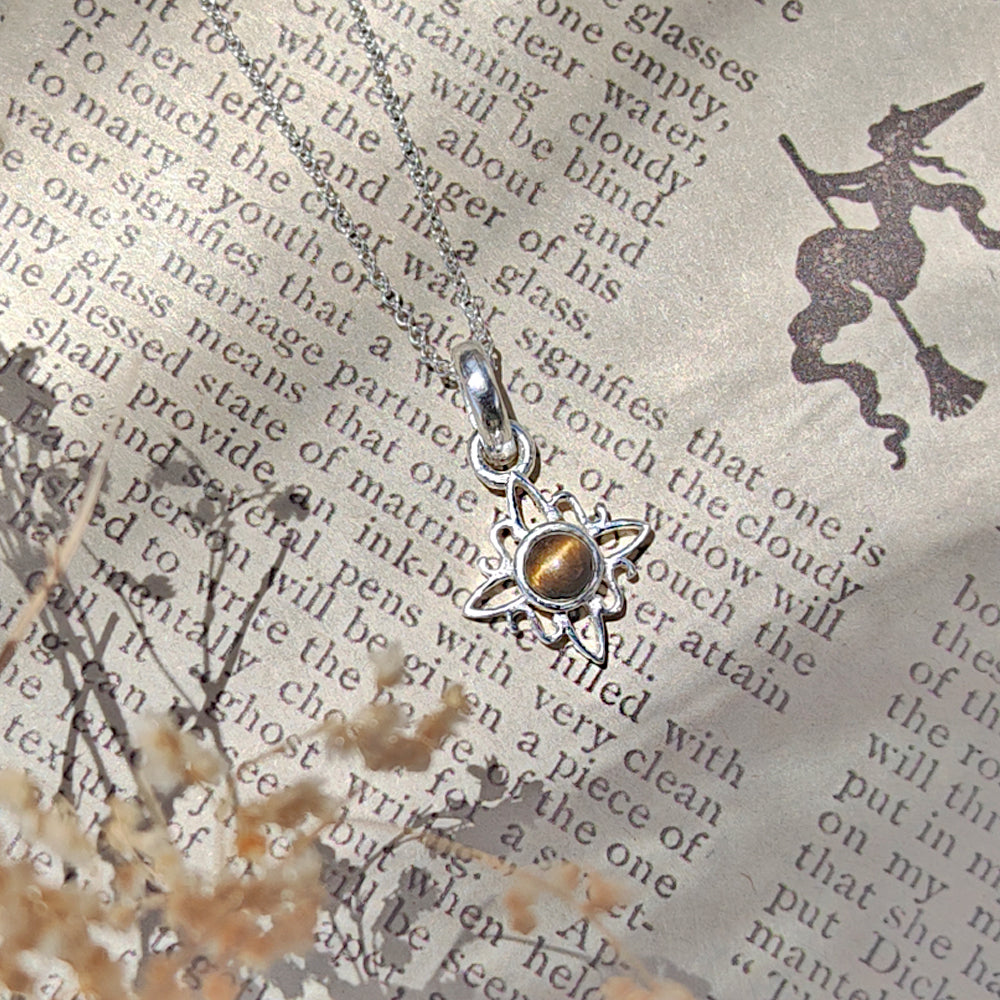 Colgante Nudo de Bruja 'Mini' Ojo de Tigre en Plata de Ley 925