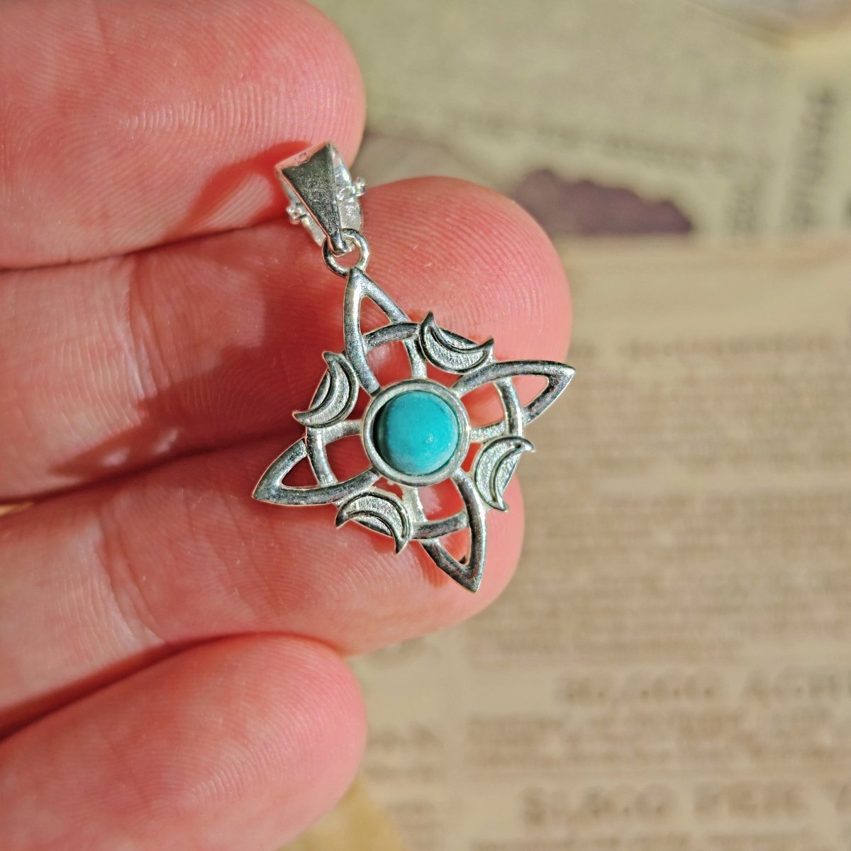 Colgante Nudo de Bruja 'Wicca' Howlita en Plata de Ley 925
