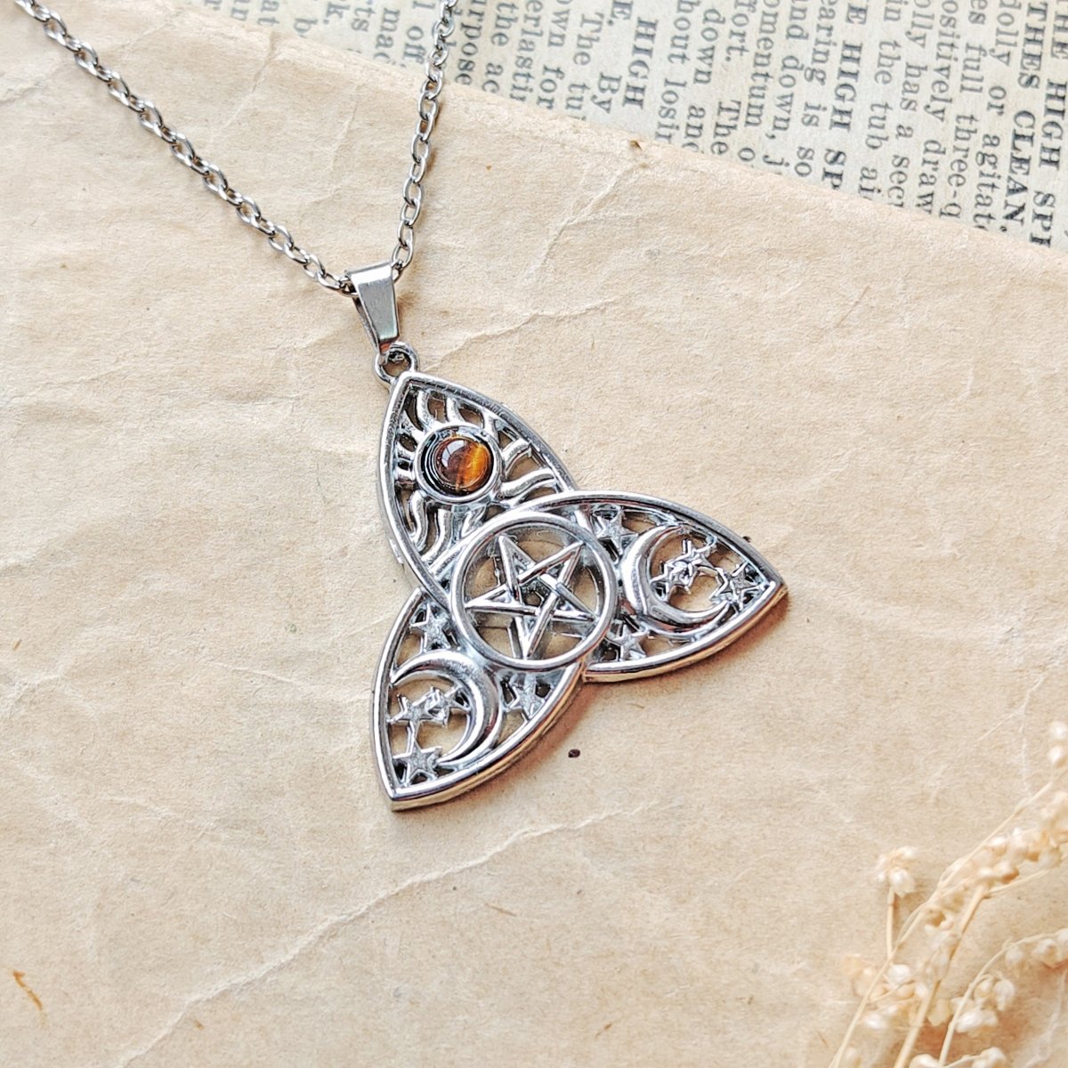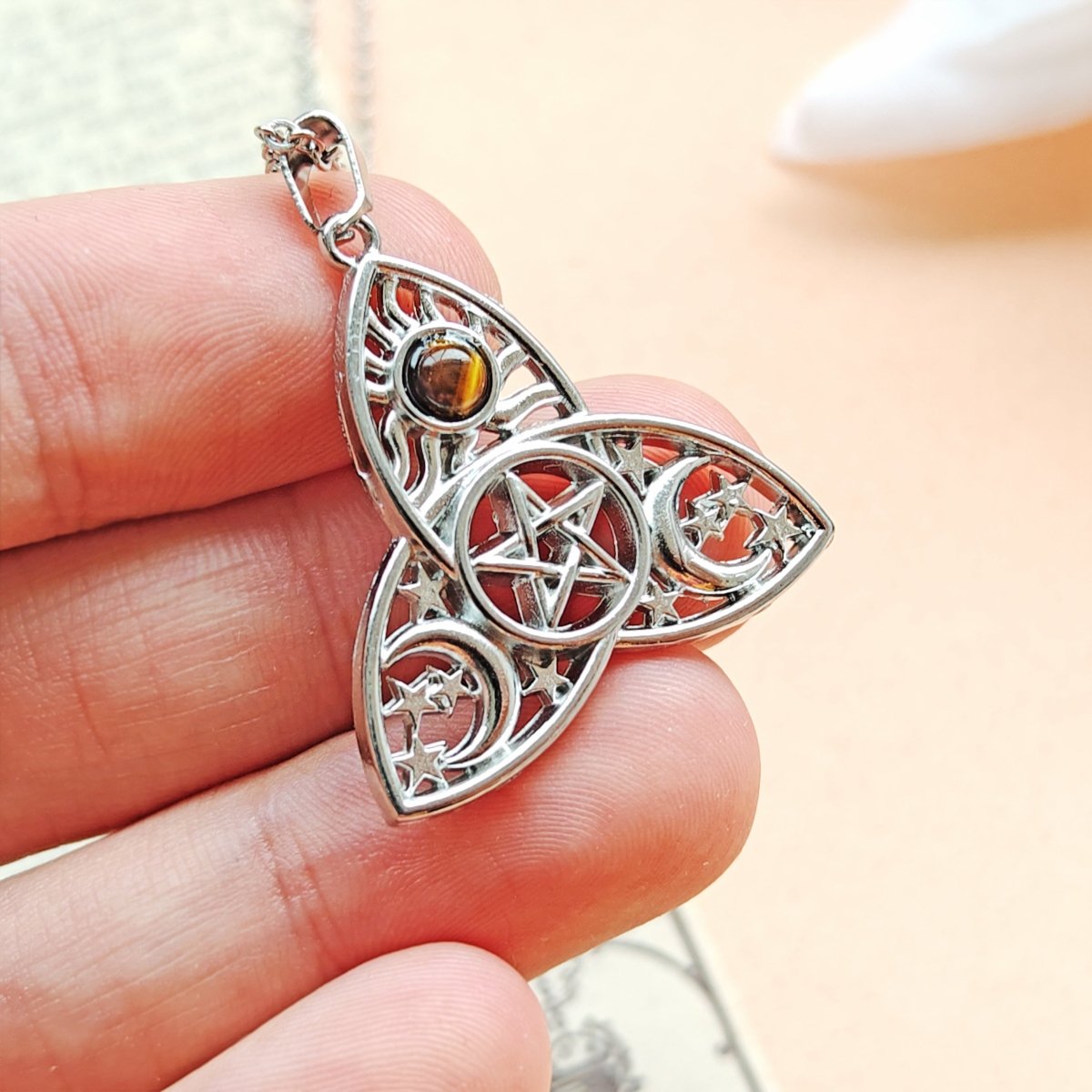 Collar Amuleto Triqueta Lunae Ojo de Tigre - Protección