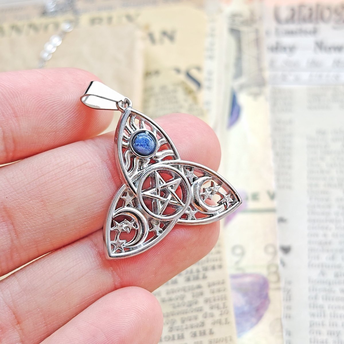 Pontente Amuleto protecctor al combinar los simbolos de la Triqueta, Pentagrama y la triple diosa.