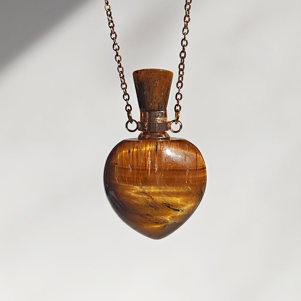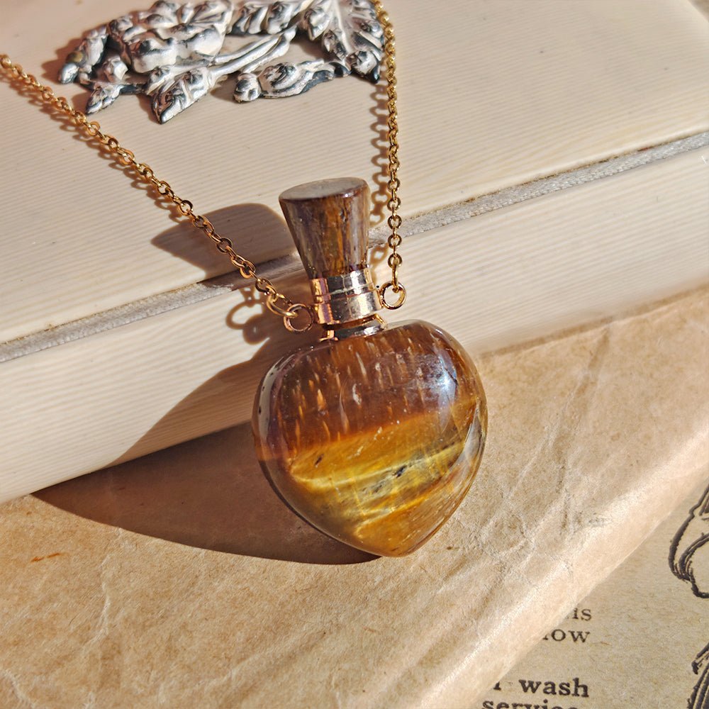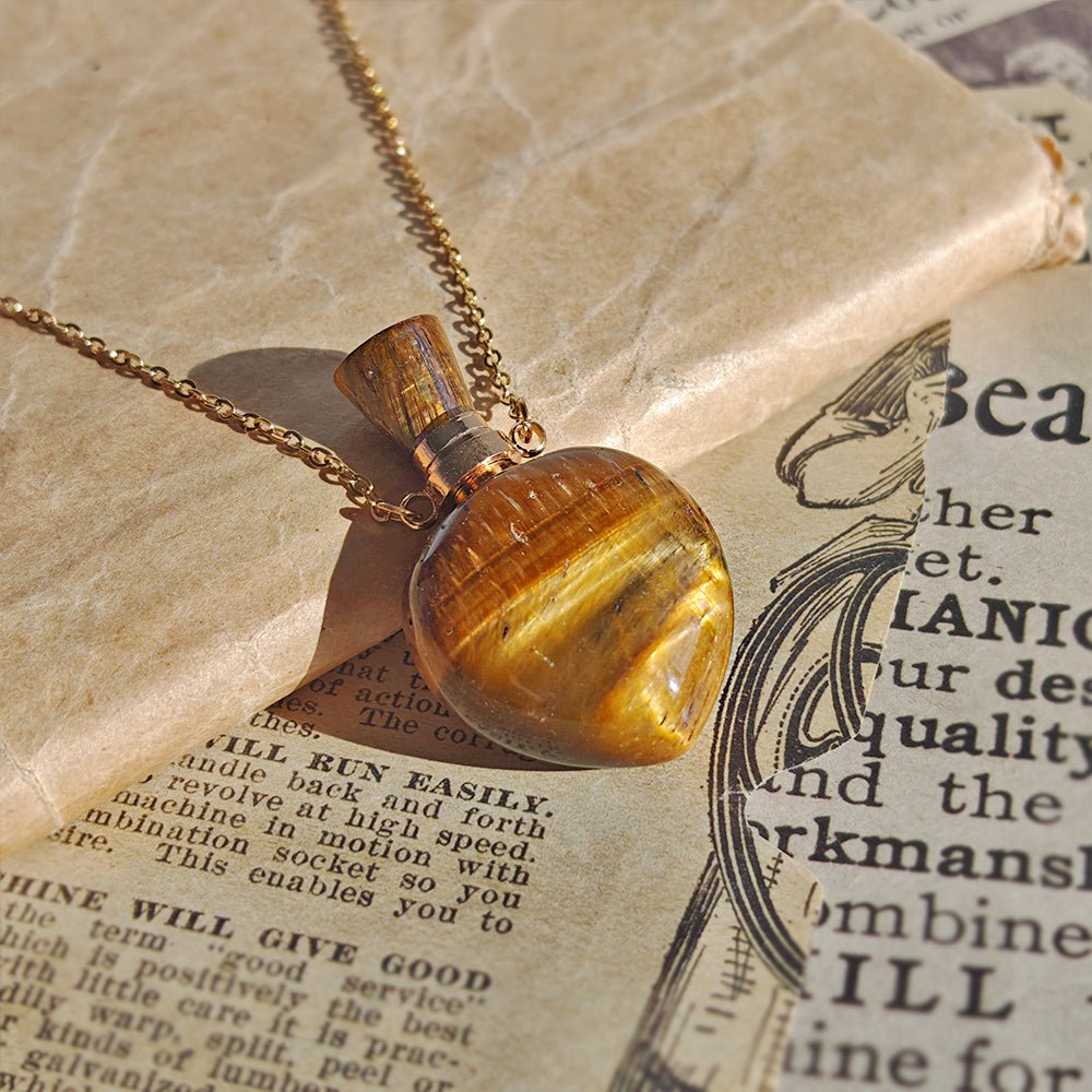 Collar Botella Mágica – Ojo de Tigre & Acero Inox. Dorado