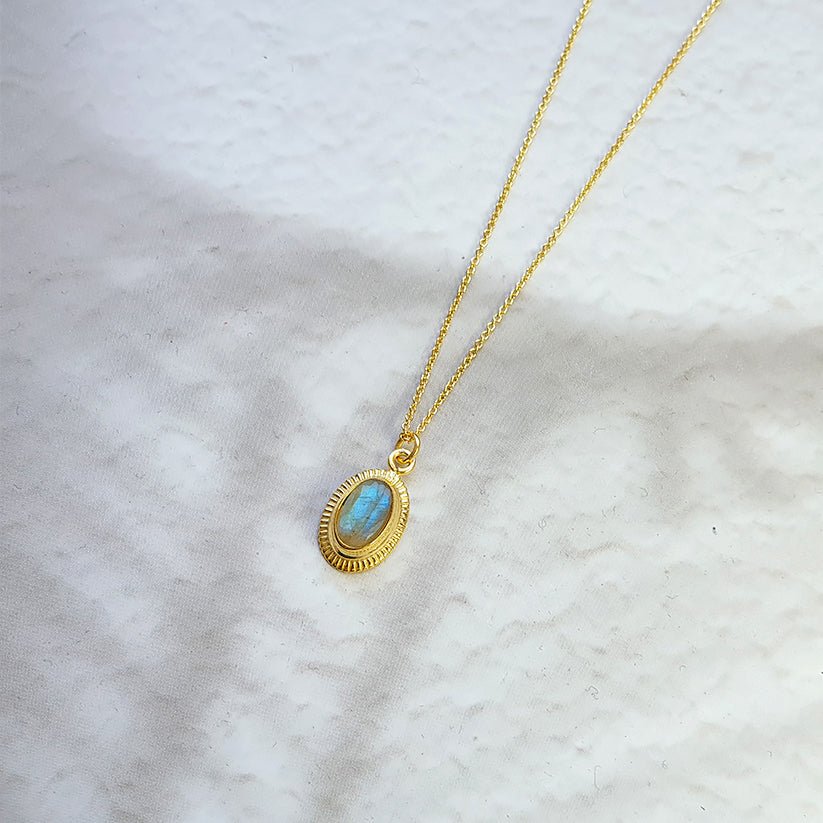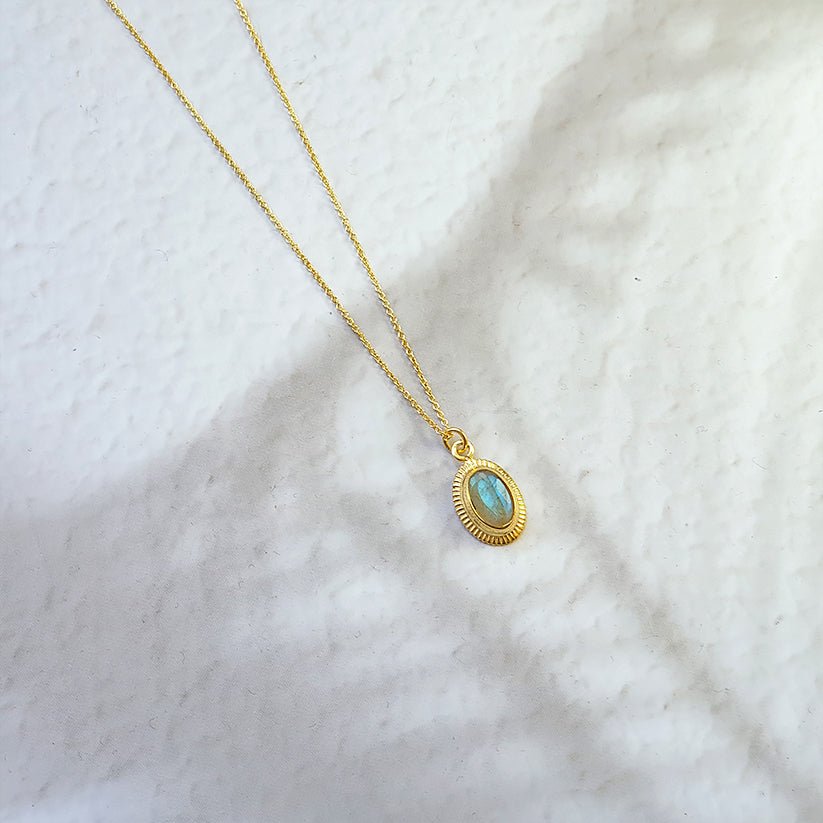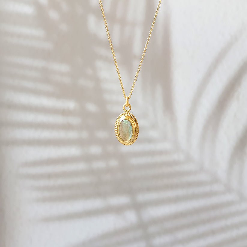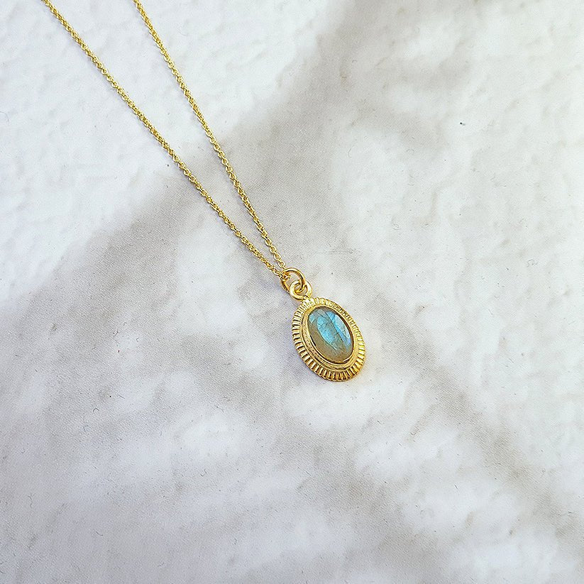 La Labradorita es una gema que tiene un efecto óptico conocido como labradorescencia, que hace que la luz se refleje en su superficie otorgándole unos preciosos reflejos tornasolados, verdes, azulados y plateados.