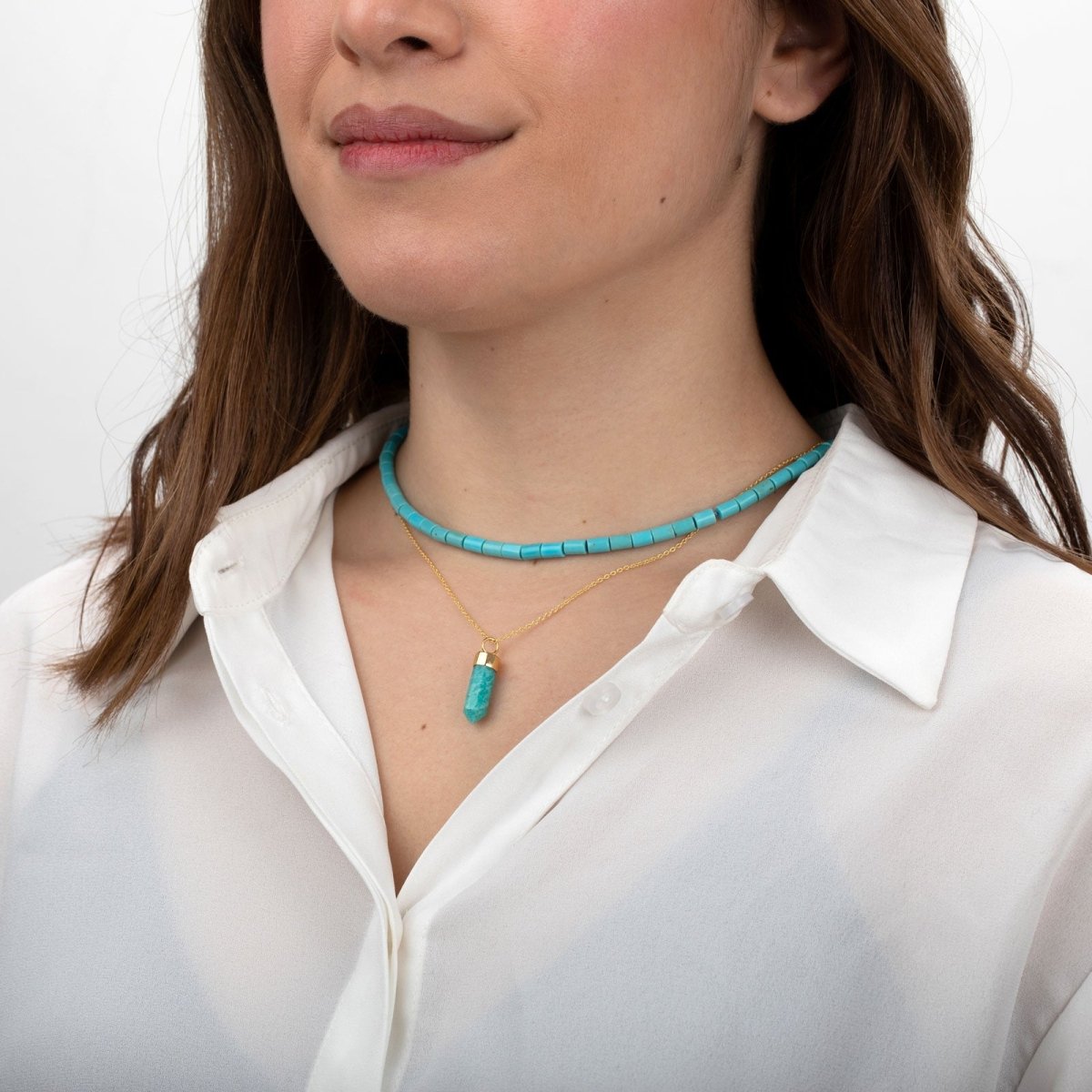 Collar Punta de Amazonita - Bronce & Baño de Oro 18K