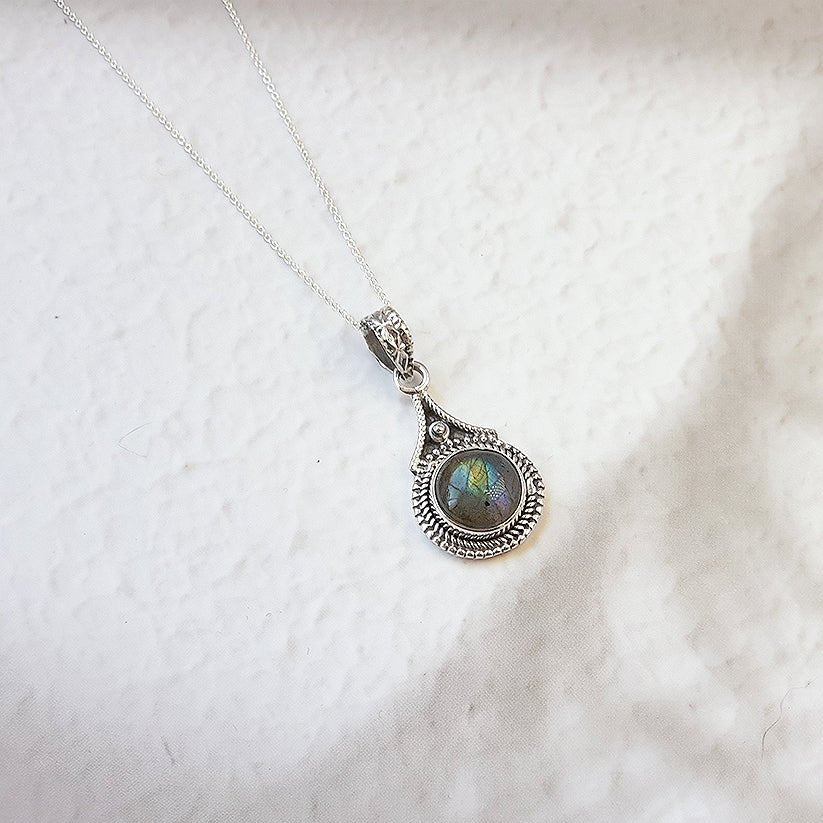 La Labradorita es una gema que tiene un efecto óptico conocido como labradorescencia, que hace que la luz se refleje en su superficie otorgándole unos preciosos reflejos tornasolados, verdes, azulados y plateados.