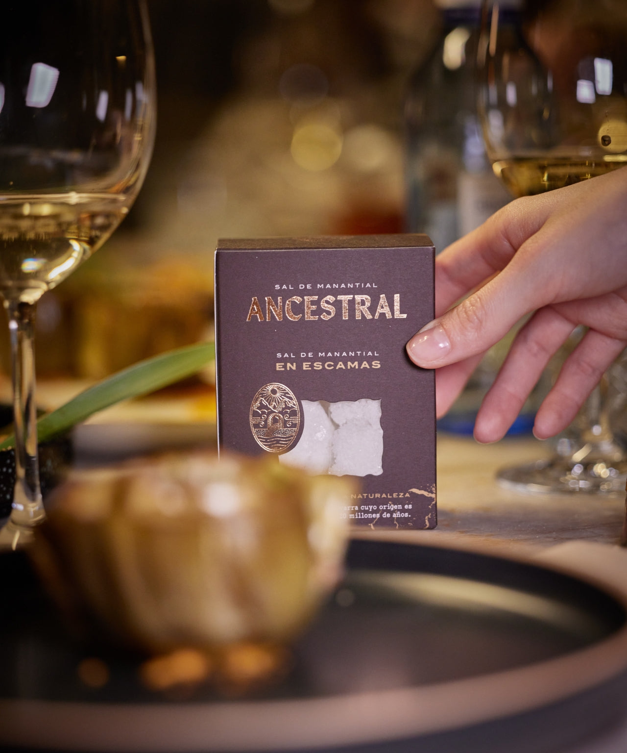 Nuestro producto más preciado. Finas escamas de sal de manantial, recolectadas artesanalmente. Esta textura en escamas se consigue tras una lenta evaporación, propia de días poco calurosos y con cierta humedad ambiental. Con viento sur o viento muy suave, se recogen cuidadosamente las escamas cuando se han precipitado en el fondo de las eras. La recogida debe ser precisa para no romper las escamas. Su balance mineral es perfecto, especialmente rica en potasio, calcio y magnesio.