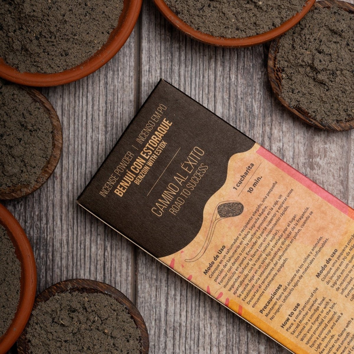 La combinación de benjuí y estoraque es el camino hacia el éxito. El benjuí, con su aroma cálido y terroso, simboliza la elevación espiritual y la conexión con lo divino.