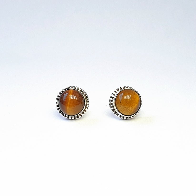 Pendientes Botón Ojo de Tigre y Plata de Ley 925