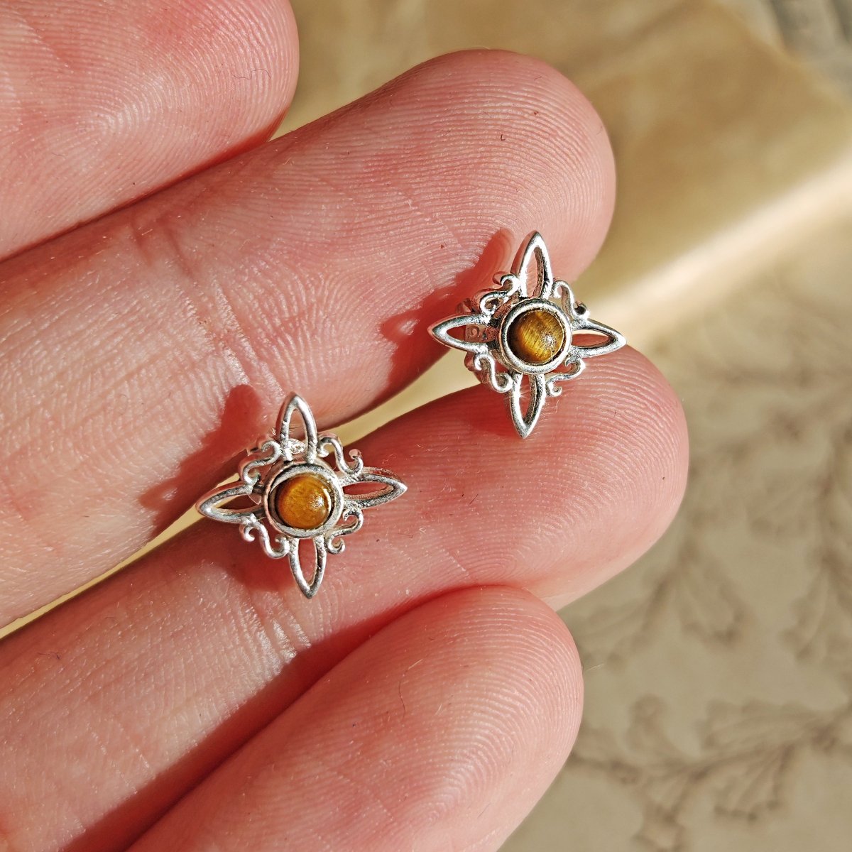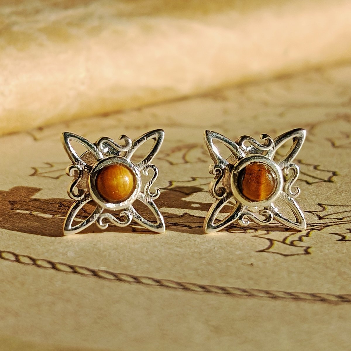 Pendientes Nudo de Bruja con Ojo de Tigre en Plata de Ley 925