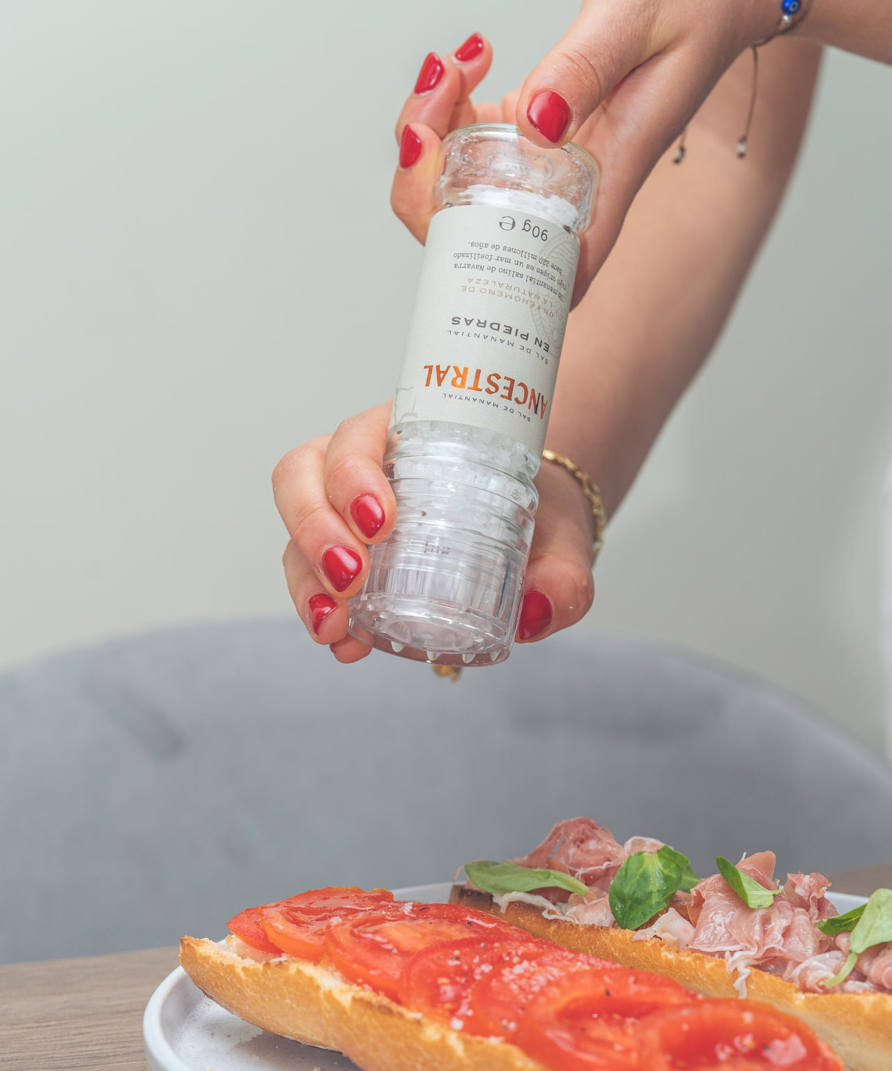Formato molinillo de vidrio de 90 gr. con grinder y tapa.