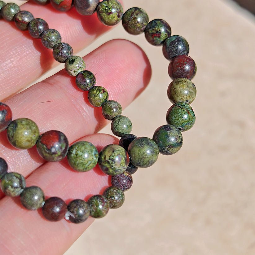 La leyenda australiana cuenta que estas piedras son los restos de los antiguos dragones, el verde es su piel y el rojo es su sangre. Por ello se considera que la Piedra Dragón es un mineral muy poderoso que nos aporta vitalidad, fuerza, valor y valentía. Nos ayuda a afrontar los retos del día a día y nos permite alcanzar nuestras metas, propósitos y objetivos con determinación y ferocidad.
