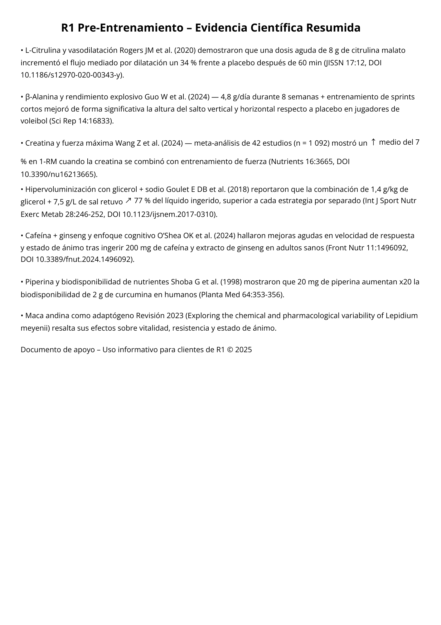 Compatibilidad · Puede combinarse con proteínas o EAA post-entreno. No combines con otros estimulantes altos en cafeína.